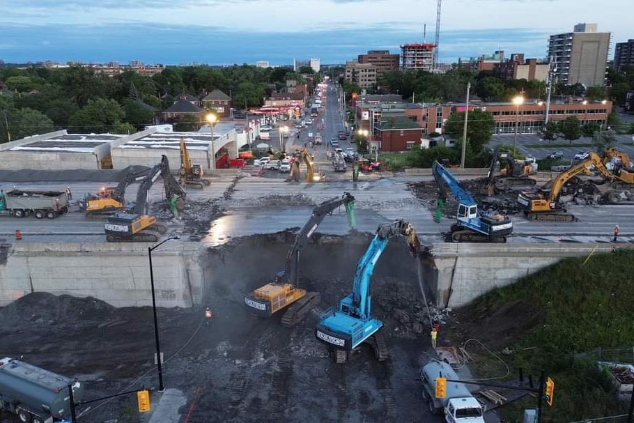 Another weekend shutdown over Canada’s busiest highway. The demolition of 3rd Line overpass in Bainsville, Ontario was carried out over two nights in April 2018. Another project completed on schedule.